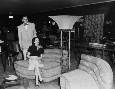 Mack and Lila Foss, owners of Foss Fine Furniture Studio, look over brilliant colors used in their new store at 4750 East Belknap, which was formerly at 2713 Race. Published in Fort Worth Star-Telegram morning edition, March 30, 1951.