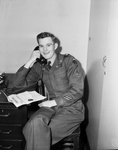 Sergeant Archie Lee Wadley of Eagletown, Oklahoma, said "I do" here while his bride, Miss Ernestine Margaret Bruckner, inset, gave the response in Germany that made them man and wife. Sergeant Wadley will return to Germany and is about to be married all over again by a burgomeister. Published in Fort Worth Star-Telegram evening edition, March 29, 1951.