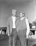 Dave Campbell, left, and Reub Berry offer mutual congratulations after finishing as champion and runner-up, respectively in City Seniors championships golf tournament at Worth Hills. Published in Fort Worth Star-Telegram morning edition, April 3, 1951.