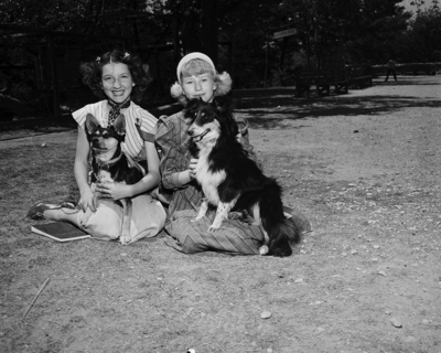 Luretta Cornwell, 3504 Strong, left, with her mixed Manchester, Chili, winner of the obedience prize, and Linda Schulte, 6104, with Pixie, judged best cared-for dog in the Children's Museum Pet Show. Published in Fort Worth Star-Telegram morning edition April 15, 1951.