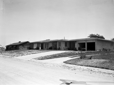 Image shows exterior shot of Mr. and Mrs. E. E. Allen and Mr. and Mrs. Oscar Smith homes in Richland Hills. Richland Hills is east of Grapevine Highway and north of State Highway 183. Published in the Fort Worth Star-Telegram evening edition, April 28, 1951.