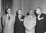 Fort Worth business men touring the Big Bend Trans-Pecos country by chartered airplane spent some time with Alpine men. In the photo, left to right, are Dick Rogers, president of Alpine's First National Bank, G. E. Holmstrom of the First National Bank of Fort Worth, Herbert Kokernot, Alpine rancher and sponsor of the Alpine Cowboys, a baseball team that plays on Kokernot field, and G. O. Barney of the Fort Worth National Bank.
