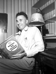 Image shows a bust shot of Dr. Anthony Valantiejus. He is seated holding a Webster's collegiate dictionary. Published in the Fort Worth Star-Telegram morning edition, April 27, 1951.