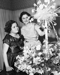Image shows Mrs. Burl Alexander, 3121 Odessa and her daughter Sunya inspecting table decorations for tea. Mrs. Alexander was co-hostess of tea party and current president of Provarsu Study Club. Published in the Fort Worth Star-Telegram evening edition, May 4, 1951.