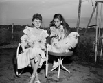These little albino Pekingese puppies saucily stick out their tongues at the photographer, as Momma and Poppa asume haughty stances. Holding four pups is Mrs. Edward E. Smith. Her daughter, Roberta Pearl, 13, is at right with an armload, too.