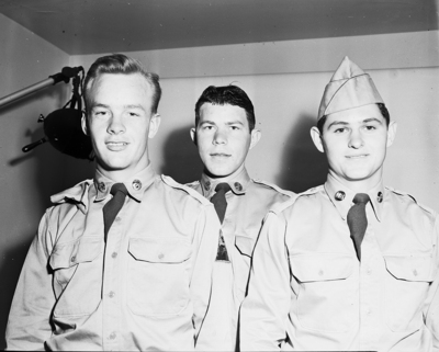 Eddie East, Clyde Brite and Weldon Kirby, left to right, were reared at Lena Pope Home, attended Arlington Heights High School together, and now are on leave from the Army after basic training at Camp Chaffee, Arkansas. East and Kirby will be assigned to Fort Campbell, Kentucky. Brite will be sent to Seattle, for overseas duty.