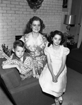 Image shows Mrs. Floyd Hammon with her children, Mary Francis and Billy Hammon, in living room. Mrs. Floyd Hammon, former Fort Worth resident and her children are visiting Mrs. I. L. Miller Jr., 4601 Nolan, to El Toro, California. Where they will join husband and father, Sergeant Floyd Hammond, stationed at El Toro in Marine Corps. Published in the Fort Worth Star-Telegram morning edition, May 10, 1951.