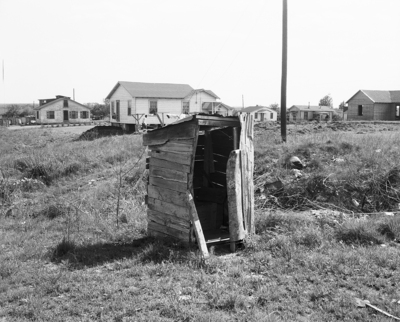 These open pit toilets at houses are typical examples of what city health officials describe as one of the city's biggest sanitary problems. The doorless shack at left is at a rent house in the 5200 block of Blackmore where sanitary sewers have not been extended by the city.