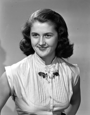 Image shows a bust shot of Linda Greathouse. She is a spring graduate of Paschal High School. Her parents are Mr. and Mrs. A. McLeod Greathouse, 2251 Washington. They will attend June Week festivities at United States Naval Academy, where their brother and son, David Greathouse, is graduating. Linda Greathouse will enter University of Texas in September. Published in the Fort Worth Star-Telegram evening edition, May 8, 1951.