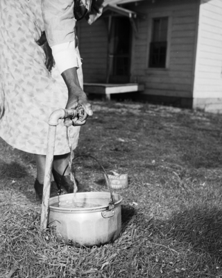 Here are barriers to proper sanitation in many of the city's African-American areas. The yard hydrant from which an aged grandmother must carry water into her house for dishwashing and bathing. Published in Fort Worth Star-Telegram morning edition May 13, 1951.