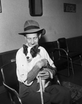 Image shows Walter Porter, 64, blind, holding "Baby", dog. The name was given to the dog by Dr. R. L. Barber of Crabb Animal Clinic to replace Porter's dog killed by a truck. Porter Lives at 3231 Bideker. Published in the Fort Worth Star-Telegram evening edition, May 9, 1951.