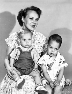 Mrs. Donald R. Dowdy and sons her sons, Michael, left, and Donald Ray Jr., right, of 3109 Greene, left for a month long vacation in which they visited both Cedar Rapids, Iowa, and Los Angeles, California. Published in the evening edition, May 23, 1951.