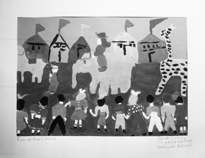 This painting by 6-year-old Sarah Collins titled "Fun at the Circus", is one of many paintings that would be displayed in the elementary school children's exhibition, held at the Fort Worth Art Association's Public library gallery. Collins was a first grader at Oakhurst School. Published in the morning edition, May 20, 1951.