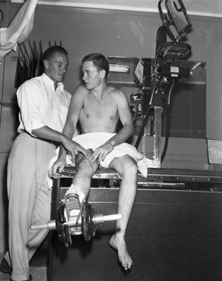 TCU's Malvin Fowler, left, and Handley's Jack Thomas. They're learning to strengthen weak knees.