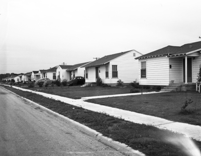 All African-American sections of Fort Worth are not dilapidated and unsanitary. This view along a typical street in Greenway Place Addition shows a row of neat homes, equipped with full inside kitchen and bathroom plumbing facilities. Published in Fort Worth Star-Telegram morning edition May 15, 1951.