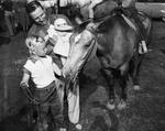 Marvin Thompson of 1511 Grand is shown giving his 6-month-old daughter, Marva, her first close-up look at a horse during the Forrest Park Saddle Club's horse show. Holding the horses reins is 10-year-old Jill Petersen, a participant in the show. Published in the morning edition, May 21, 1951.