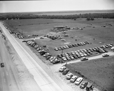 Bell Aircraft Corporation helicopter plant ground breaking ceremonies at Hurst, Texas. A shot of the field they used for the event.