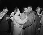Nine crewmen were brought to Carswell Air Base. Their B-36 had trouble over Queen Charlotte Sound Mrs. Martin B. Stephens grabbed her tech sergeant husband for a long kiss when he walked from a C-54 transport. "It's the happiest moment of my life", she told a chaplain seconds later as she and her husband walked arm-in-arm. Published in Fort Worth Star-Telegram evening edition, February 18, 1950.