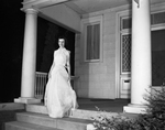 Image shows Miss Louise O'Connor, modeling dress that she made to wear at the wedding of her sister, Miss Catherine O'Connor, to Mr. Robert Botsford. Published in the morning edition, May 27, 1951.
