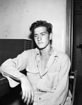 After three men wearing Army clothes robbed an E. Rosedale service station of $39.15 before dawn on Tuesday, May 22, 1951, the men fled in a stolen car and stirred a two-county man-hunt that caught two of the robbers an hour later in Grand Prairie. This image shows one of the robbers, Paul Rhodes, page 19. Published in the evening edition, May 22, 1951.