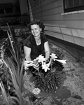 Mrs. O. C. Mitchell, of 3236 Bideker, is shown with an Easter lily that she received as a gift while she was super-intendent of the young people's department of Evans Avenue. Published in the morning May 27, 1951.