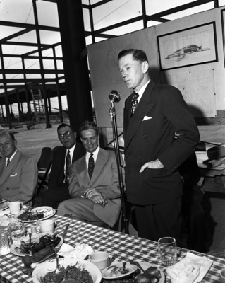 Approximately 300 people attended a noon luncheon on the passenger level of the Amon Carter Field and Terminal Building at the Greater Fort Worth International Airport. The luncheon was held in honor of the State Highway Commission. This image shows D. C. Greer, a state highway engineer. Published in the evening edition, May 26, 1951.