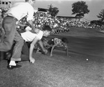 Young boys break under ropes to scramble for ball thrown toward them by golfer finishing round in Colonial National Invitation golf tournament, 05/26/1951