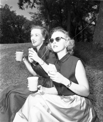 Lucille Brown and Alice Cook watch drive from 6th tee at Colonial National Invitation golf tournament, 05/26/1951
