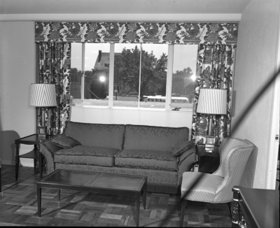 Image shows an interior shot of the Cattlebaron T-bar suite at the nearly completed Westchester House hotel, a new 12-story apartment style hotel located at Pennsylvania and Summit in Fort Worth. Published in the morning edition, May 27, 1951.