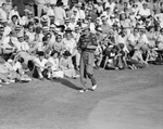 Image shows Al Brosch walking on course from 18 after finishing with par, low round- three under 67. He is walking in front of a unidentified crowd at Colonial National Invitation Golf Tournament. Published in the Fort Worth Star-Telegram morning edition May 27, 1951.