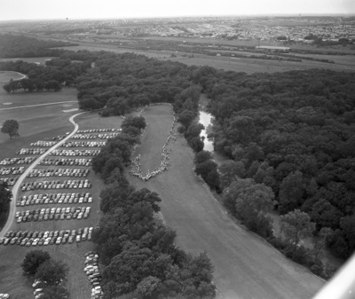 Air view of Colonial Country Club taken during 1951 National Invitation golf tournament, 05/27/1951