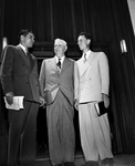 Reverend George P. Gaskins, left, pastor of Kellis Park Baptist Church, is shown chatting with William Fleming, center, and Charles McLaughlin, after the church's dedication services. Published in the morning edition, May 28, 1951.