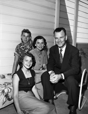 Tom J. Renfro, right, newly appointed associate justice to the Second Court of Civil Appeals, is shown posing with his family at their home on 3261 Odessa. Seated at left is his twelve-year-old daughter, Sheila, standing behind her is Renfro's fifteen-year-old son, Tommy, and at the center is Mrs. Renfro. Published in the morning edition, May 30, 1951.