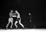 Ferrell Snider (right) of Fort Worth lands a short right to the jaw of San Antonio's Jesse Herrera. Published in the Fort Worth Star-Telegram morning edition, February 20, 1950.