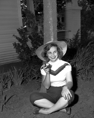 School Teacher Carmen Reinli munches on a gift from a student and thinks happy thoughts about summer vacation time. She believes the teachers look forward to summers about as much as do the kids. Miss Carmen Reinli, elementary school teacher, shown eating an apple. Published in Fort Worth Star-Telegram morning edition June 1, 1951.