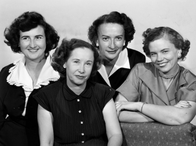 Four Fort Worth elementary school teachers were awarded scholarships to the annual work conference on human relations at the University of Texas. they are, left to right, Mrs. Virginia Morgan, Mrs. Marguerite Atwood, Kathryn Kirby, and Georgia Fletcher. Published in Fort Worth Star-Telegram morning edition June 3, 1951.