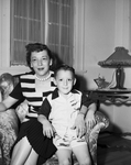 Mrs. Thomas J. Taylor and son, Chris are with Mr. Taylor from Philadelphia visiting with his parents, Mr. and Mrs. J. A. Taylor, 2204 Mistletoe Ave. Mrs. Thomas J. Taylor and her son are seen sitting on a couch next to a lamp. Published in Fort Worth Star-Telegram morning edition June 2, 1951.