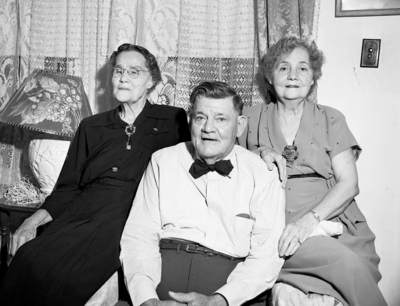 Preparing for the annual Stegall family reunion to be held in Fort Worth, Mrs. Robert Haynes, right and Mrs. C. F. Brooks have had their brother, Will B. Stegall of Shallowater as their guest for several days. Published in Fort Worth Star-Telegram morning edition June 10, 1951.