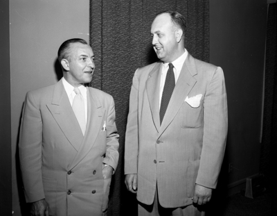 Dr. Milton Gafney of Tyler, left, president-elect of the Texas Osteopathic Hospital Association, talks with Dr. Roy B. Fisher, of Fort Worth, the organization's new president. Dr. Milton Gafney and Dr. Roy B. Fisher are shown speaking to each other. Published in Fort Worth Star-Telegram morning edition June 3, 1951.