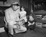 A baby panther at Forest Park Zoo is exhibited by Acy B. Smith for two little Kings - Christy, right, and Kathy, daughters of Mr. and Mrs. Tim King, 2712 Frazier. Acy B. Smith can be seen holding a baby panther on his lap. Published in Fort Worth Star-Telegram morning edition June 10, 1951.