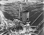 This is a view of one of the three final clarifiers under construction in the city's $1,800,000 sewage disposal plant expansion program. Other improvements are three secondary clarifiers, two digestors, and eight filters, each 200 feet in diameter.