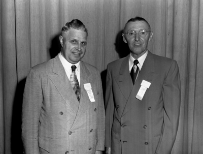 Reverend Wesley R. Steelberg of Springfield, Missouri, left, general superintendent of the Assemblies of God, will preach each day at the Texas District Council of the Assemblies of God at Fort Worth. With him is the district superintendent, Reverend J. O. Savell of Waxahachie. Reverend Wesley R. Steelberg and Reverend J. O. Savell can be seen smiling for the photograph. Published in Fort Worth Star-Telegram morning edition June 6, 1951.