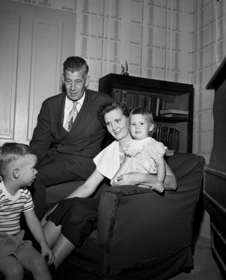 Mr. and Mrs. D. H. Kidd and children, Michael and Kathleen, are in Fort Worth from the Canal Zone visiting her sister and brother-in-law, Mr. and Mrs. E. T. Mc Garrey, 1400 Lipscomb. Mrs. D. H. Kidd can be seen holding Kathleen in her arms next to Michael and Mr. D. H. Kidd in the photograph. Published in Fort Worth Star-Telegram evening edition June 5, 1951.