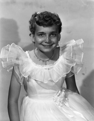 Portrait of Sharon Powell, Riverside princess. Sharon is a little girl, and she is wearing a dress.