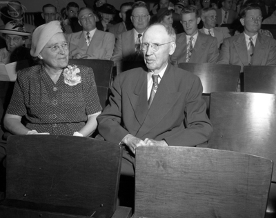 Shown seated at the Central Texas Methodist Conference, Mrs. J. W. W. Shuler of Hillsboro, left, parents of "Fighting Bob" Shuler and to the right, Reverend Mr. Shuler, who is retired. Published in Fort Worth Star-Telegram evening edition June 7, 1951.