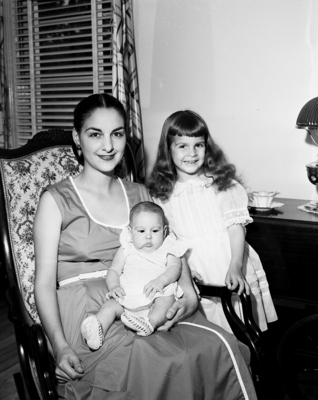 Mrs. J. H. Van Voorhis is new chairman of the Creative Arts Section of the Junior Woman's Club. Mrs. Van Voorhis is shown with her two children, Cynthia, right, and Celia. Published in Fort Worth Star-Telegram morning edition June 12, 1951.