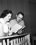 Faye Roberts of Odessa and James Shelton of Pampa check the program for the 10th state rally of Theta Rho Girls and Junior I. O. O. F. at Hotel Texas. Faye is president of the Odessa Theta Rho chapter. James, a lineman on the Pampa High grid squad, serves as treasurer of his Junior Odd Fellows chapter.