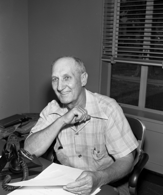 G. H. Burt is shown sitting at a desk. He's holding a sheet of paper in his left hand. Published in Fort Worth Star-Telegram evening edition June 9, 1951.