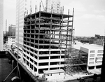 The picture is a progress report on changing the downtown skyline. In foreground is shown steel in place for 11 of the 16 stories for the Jesse H. Jones office building, W. 7th and Taylor. At left, background is shown a portion of the 15-story Fort Worth National Bank at W. 7th and Main with steel work up to the 8th floor. The 19-story Fair Building is shown towering behind the new Jones structure. Published in Fort Worth Star-Telegram morning edition June 10, 1951.