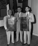 At Disabled American Veterans convention in Fort Worth, Judge Drew Clifton, center, presents plaques for helping handicapped persons find jobs to Jim Bunting (left) and Eugene Munn, 06/09/1951